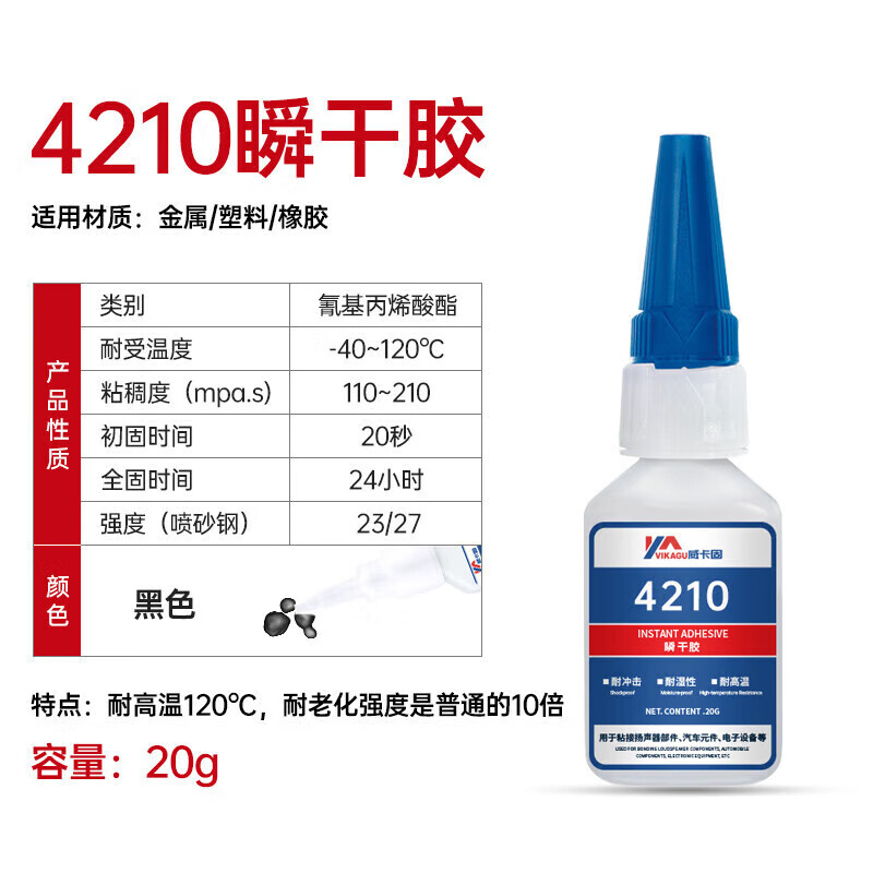 威卡固/VIKAGU 4210 瞬干胶汽车橡胶增强专用胶耐高温耐冲击强力电焊胶水 20g