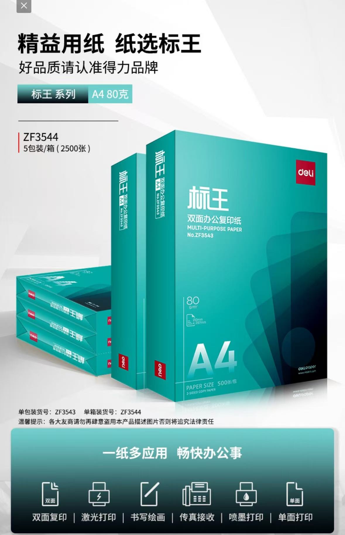得力 标王ZF3544/70g-A4 5包/箱(定点采购)