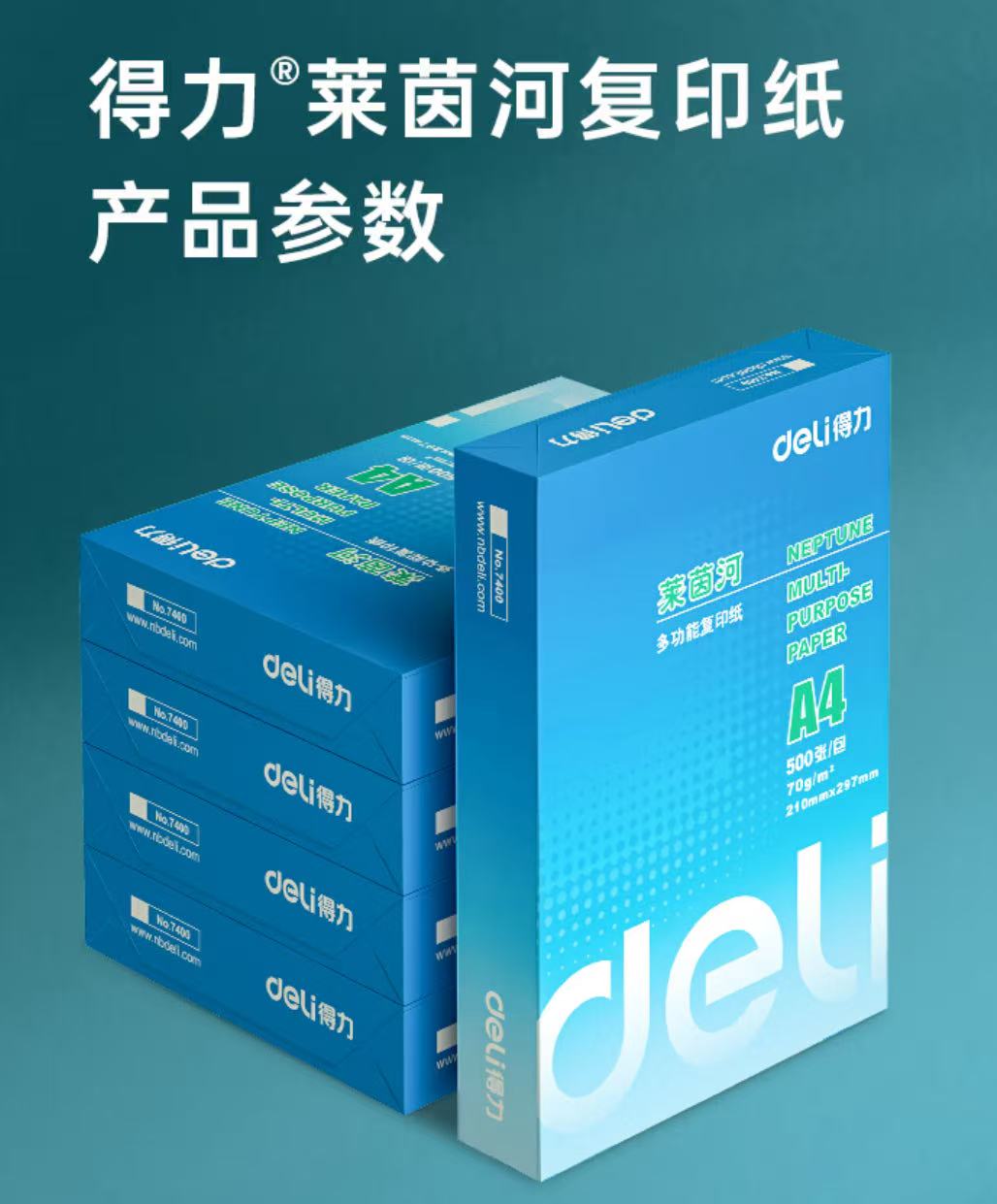 得力 莱茵河A4复印纸70g 5包/箱(定点采购)