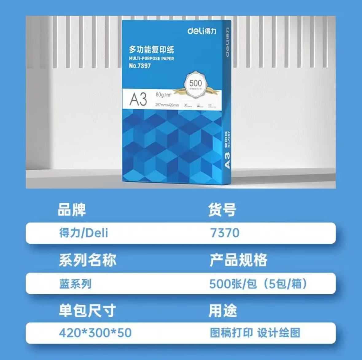 得力 莱茵河A3复印纸80g 5包/箱(定点采购)