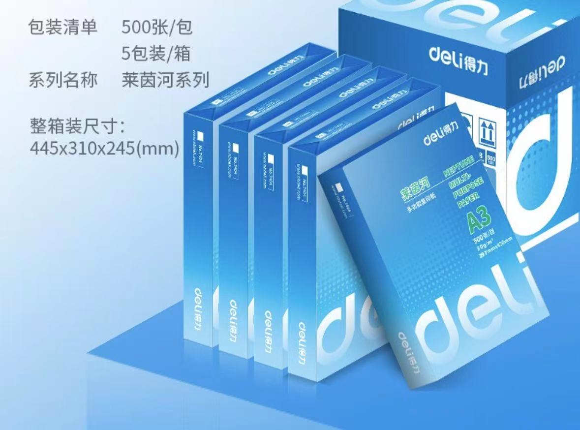 得力 莱茵河A3 复印纸 打印纸 80g 5包/箱(定点采购)