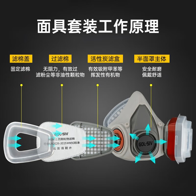 胜丽 M6200防毒面具口罩 防有机气体蒸汽/苯/汽油 喷漆化工煤矿 配M6001