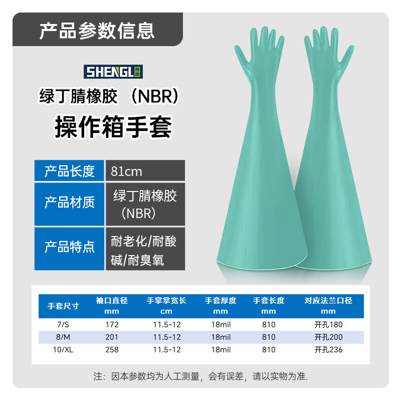 胜丽 绿色丁腈橡胶手套干箱手套实验室操作箱手套 GCB710 1只装 袖口258mm