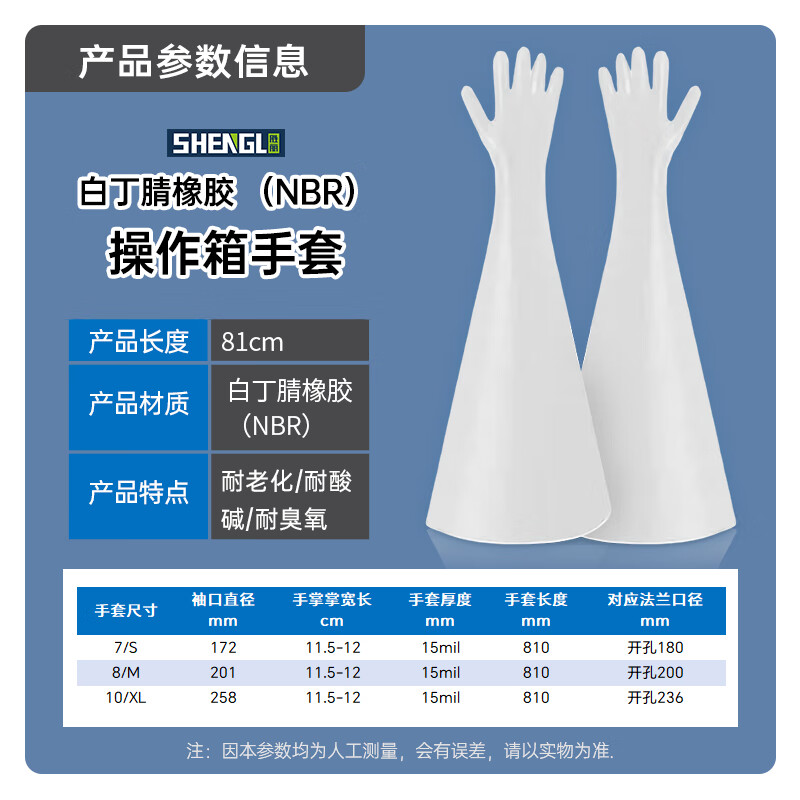 胜丽白色丁腈橡胶手套干箱手套实验室操作箱手套 1只装 GCB810 袖口258mm
