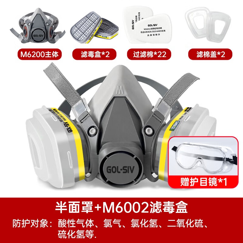 胜丽 M6200防毒面具口罩 防酸性气体/氯化氢/二氧化硫 实验室装修农药 M6002 配22片滤棉