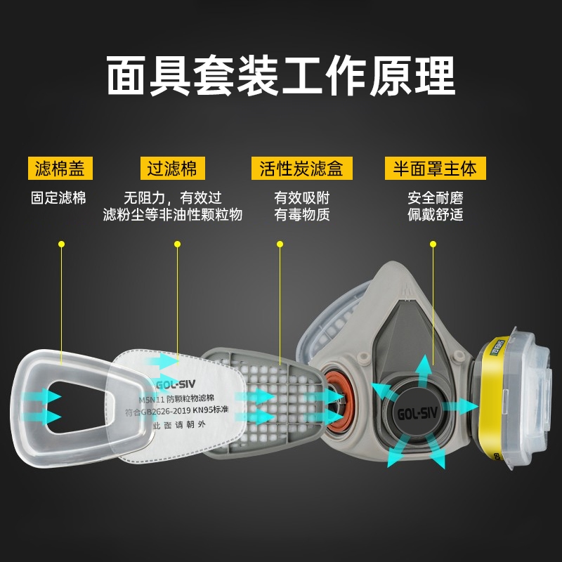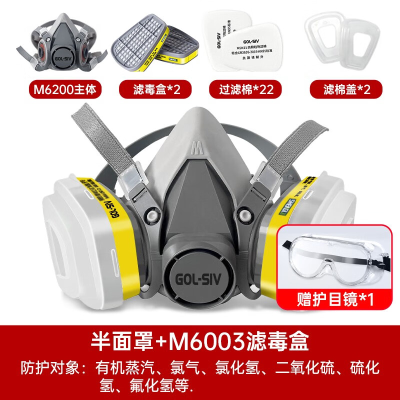 胜丽 M6200防毒面具口罩 防有机蒸汽/硫化氢/二氧化硫 化工装修喷漆 M6003 配22片滤棉