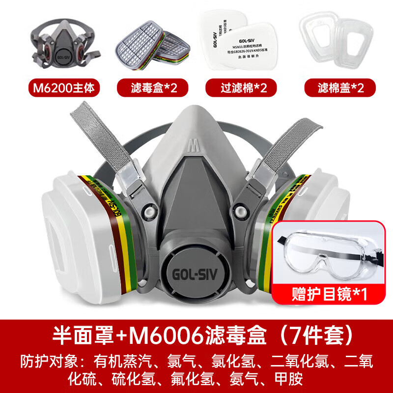 胜丽 M6200防毒面具口罩 防毒面罩配22片滤棉 喷漆实验室防有机蒸气/及多种气体配M6006滤毒盒