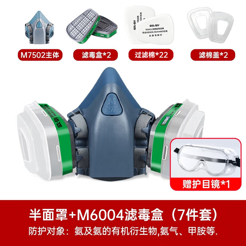 胜丽 M7502 防毒面具口罩 防氨及氨的有机衍生物 实验室肥料加工化学加工 M6004配22片滤棉