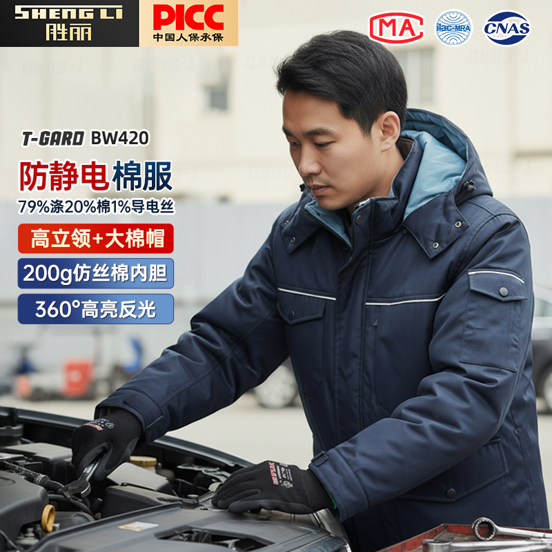 胜丽(SHENGLI) 冬季防静电劳保棉服工作服棉袄加厚防寒服劳保服带反光条车间加油站