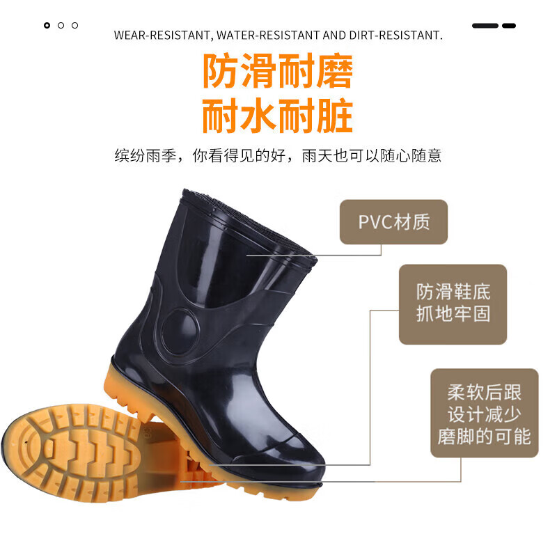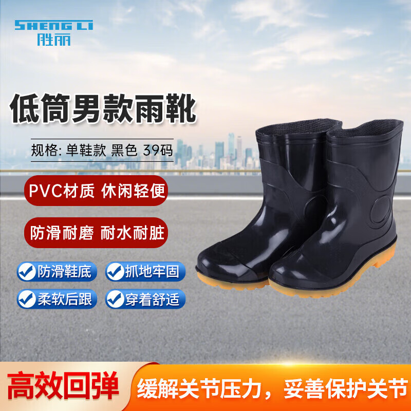 胜丽 FPB020M 低筒雨鞋雨靴单鞋男款黑色 1双装