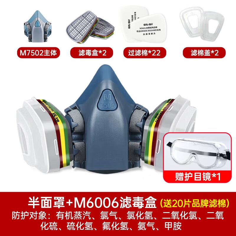 胜丽 M7502 防毒面具口罩 防有机蒸气及多种气体 喷漆装修实验室 硅胶款 配M6006