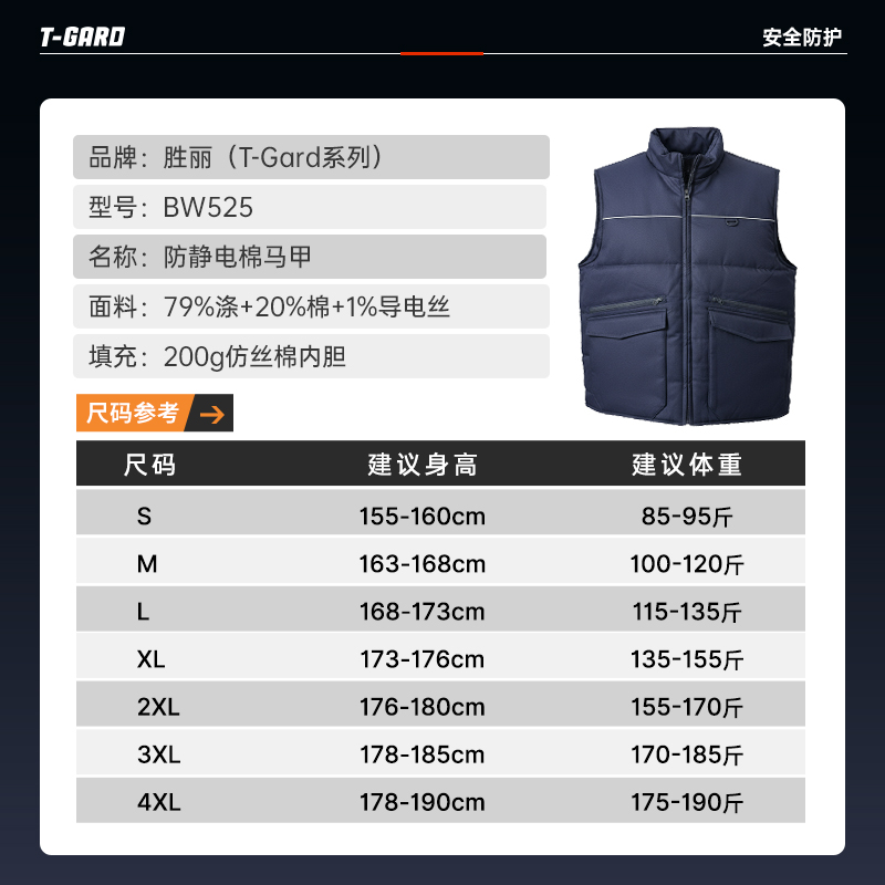 胜丽(SHENGLI) 冬季劳保棉服棉马甲 加厚防寒服工装背心防静电劳保服上衣员工工作服 藏蓝色马甲 BW525