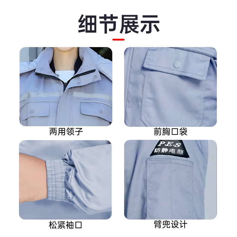 胜丽 冬季工作服棉服加厚保暖防静电夹克棉袄车间劳保棉服 灰色 BWC004 1件装
