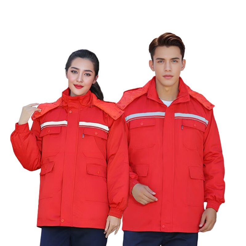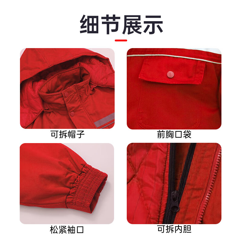 胜丽 冬季工作服棉服加厚保暖防静电夹克棉袄车间劳保棉服 红色BWC004 1件装