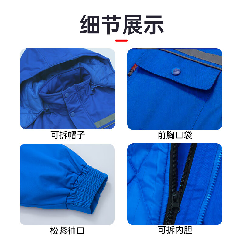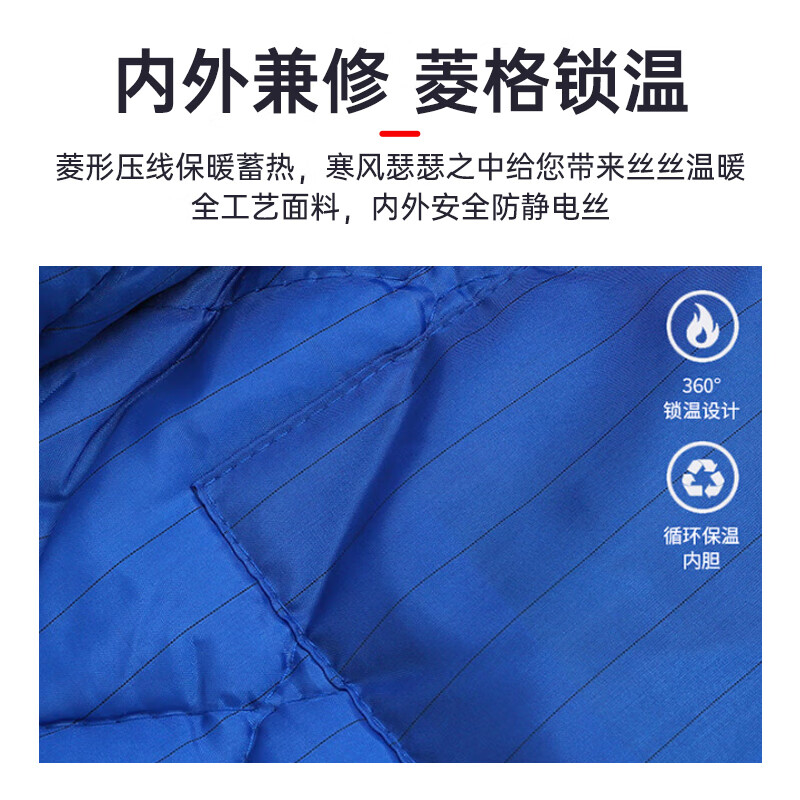 胜丽 冬季工作服棉服加厚保暖防静电夹克棉袄车间劳保棉服 艳蓝色 BWC004 1件装