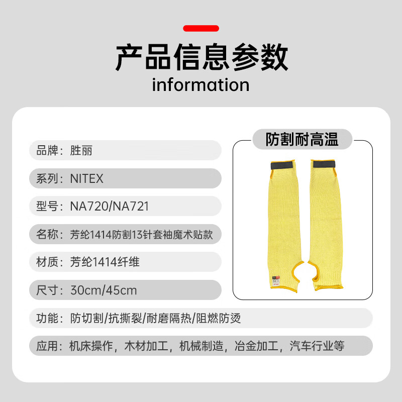 胜丽 NITEX® 5级防割护臂袖套护腕抬玻璃肘部防划伤 30cm NA720