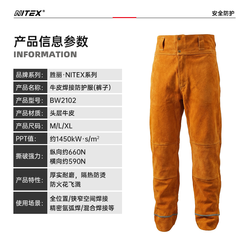 胜丽 焊工服焊工防护装备电焊工工作服防烫阻燃头层牛皮电焊工作服裤子 BW2102