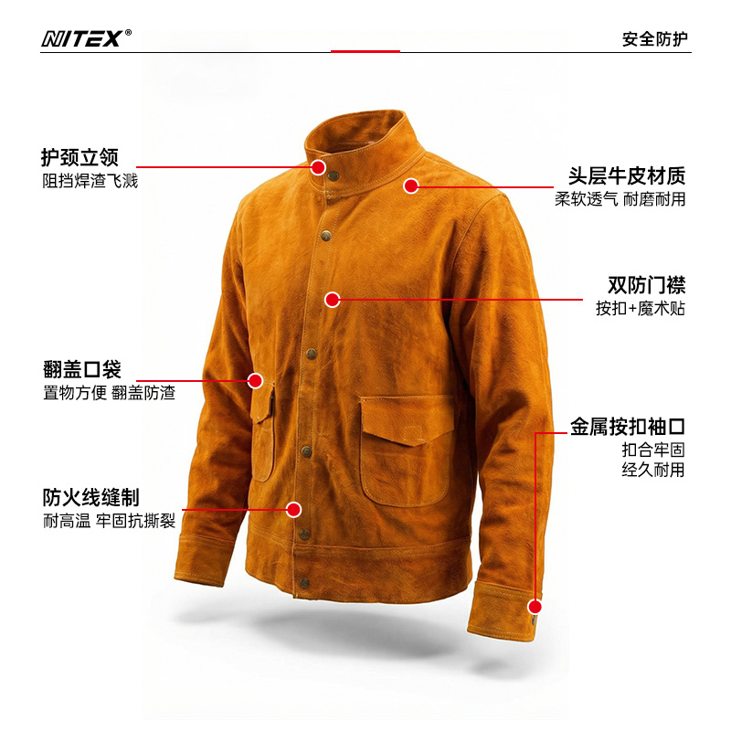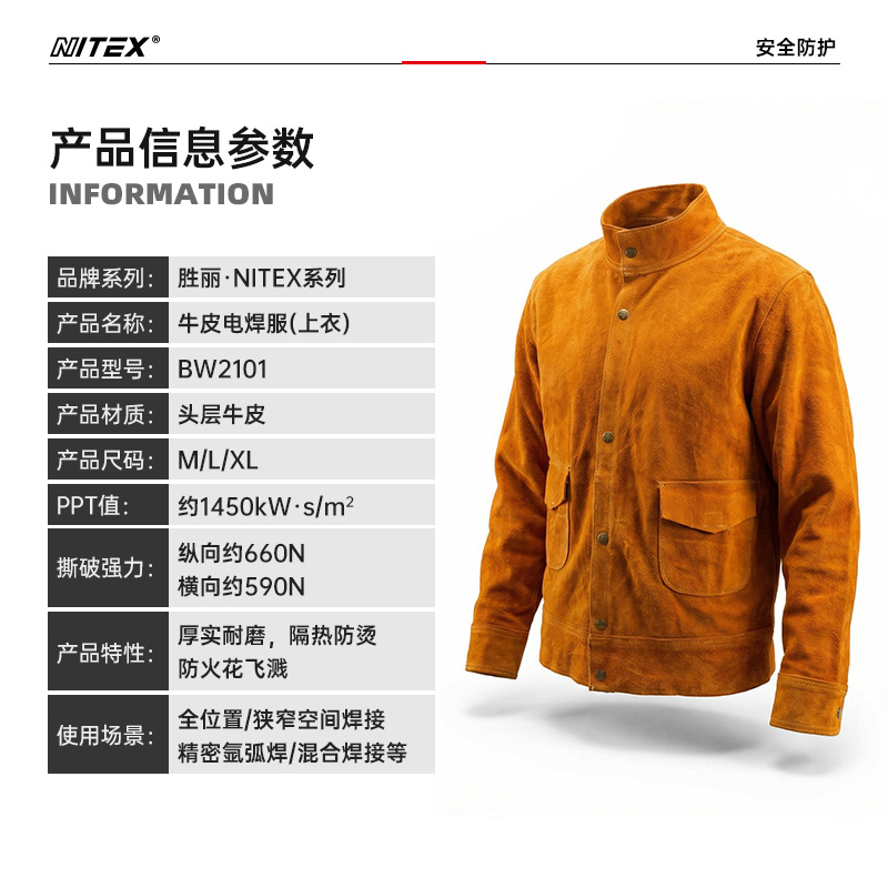 胜丽 焊工服焊工防护装备电焊工工作服防烫阻燃头层牛皮电焊工作服上衣 BW2101