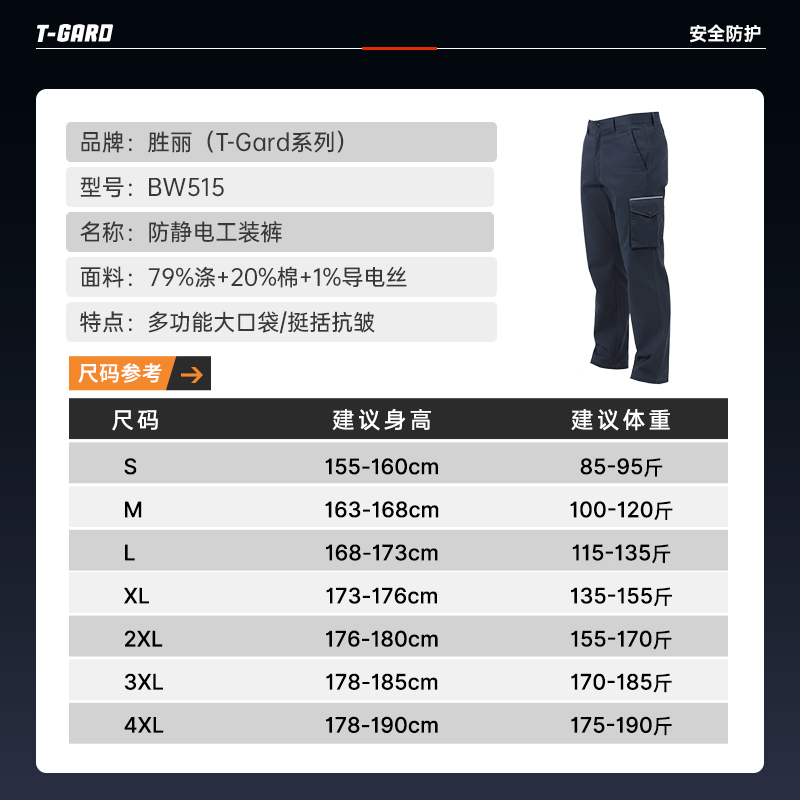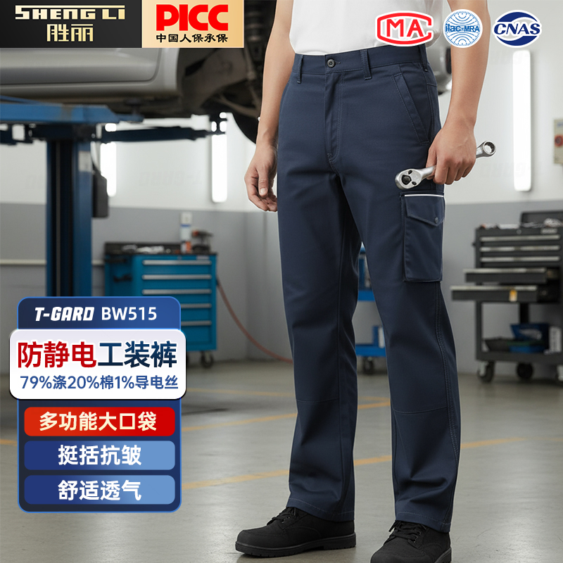 胜丽(SHENGLI) 防静电春秋工作裤耐磨工装裤舒适汽修劳保裤藏蓝色 BW515