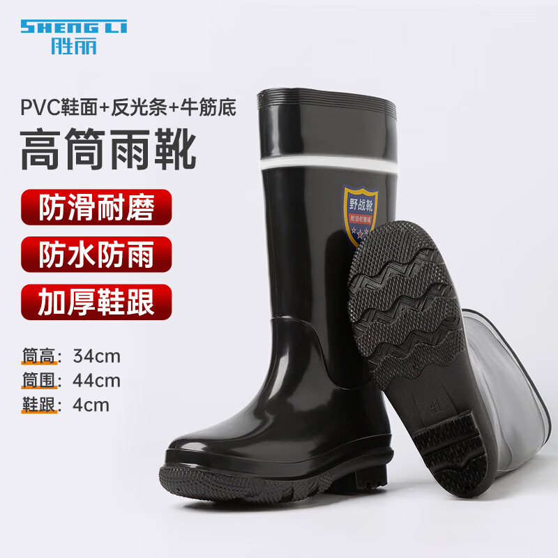 胜丽 雨鞋高筒胶鞋男防滑耐磨 户外雨天夜间带反光条 水鞋雨靴 1双装 717-2