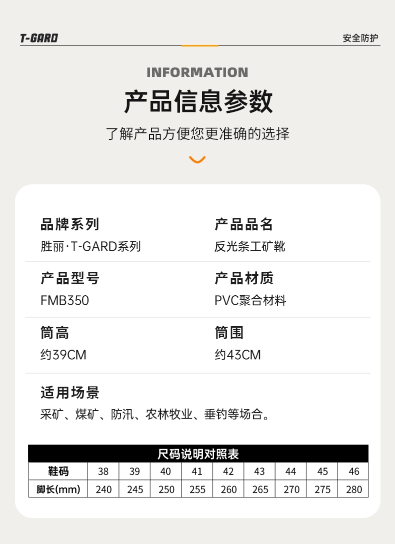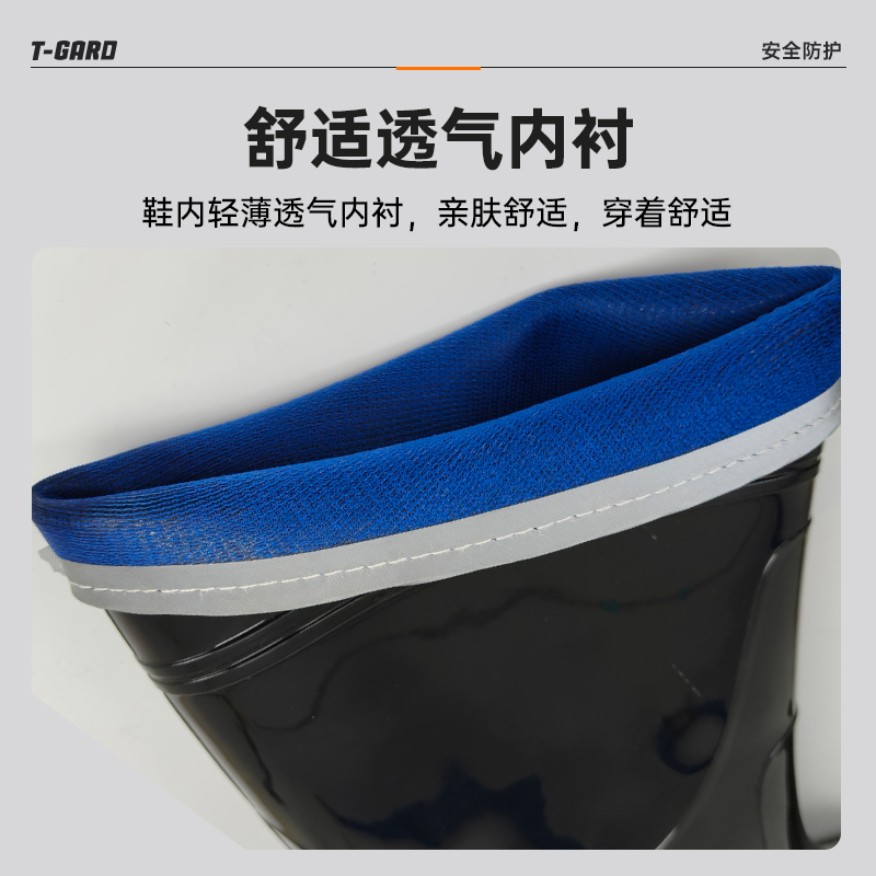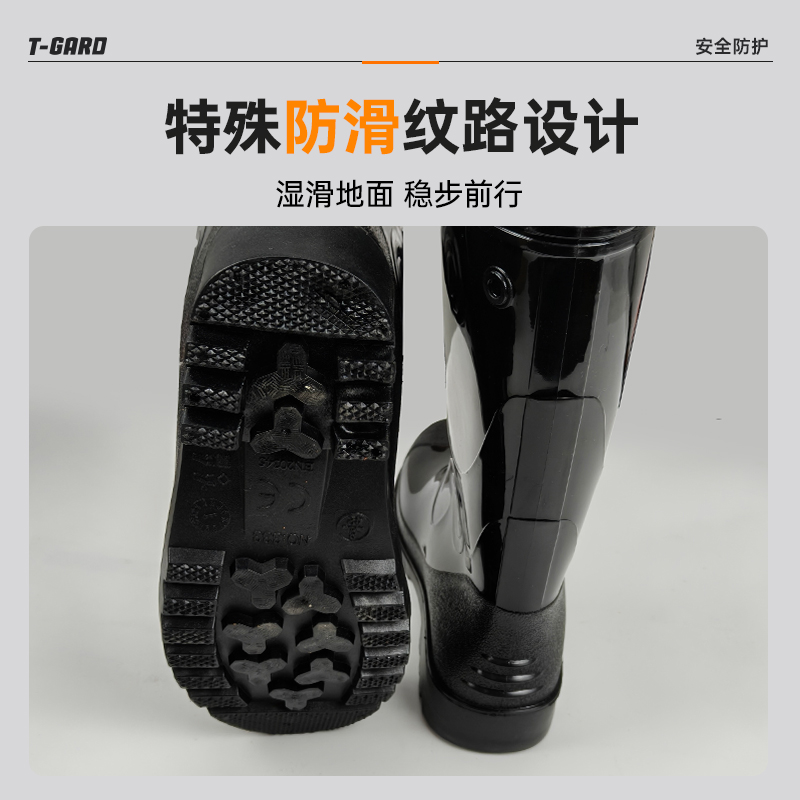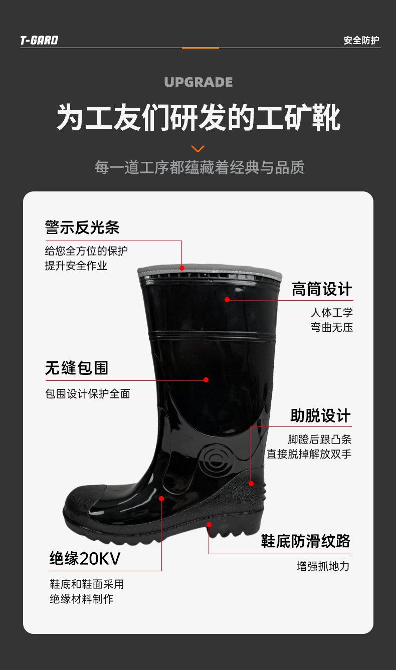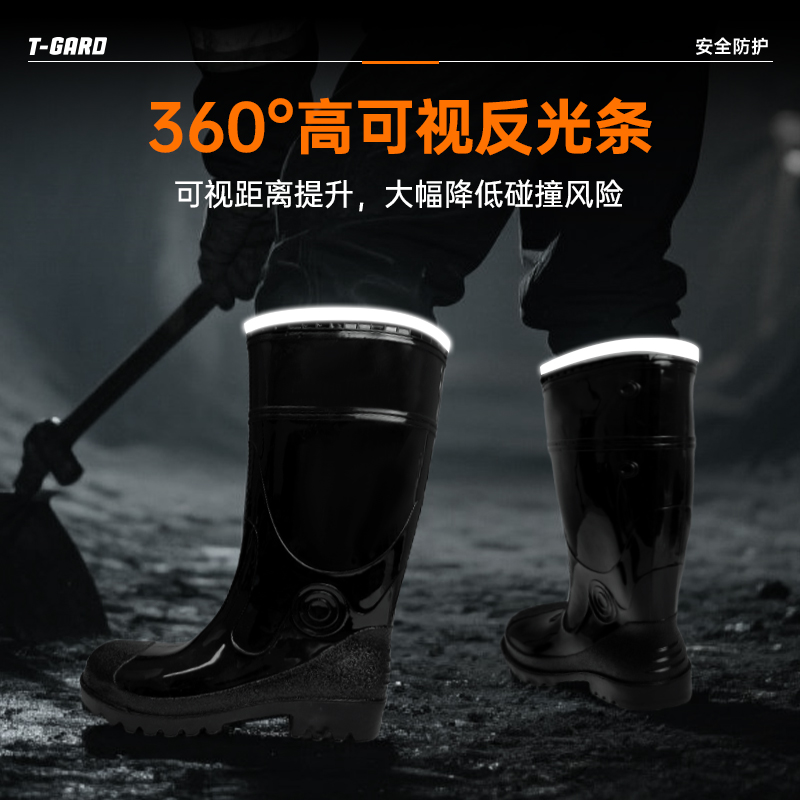 胜丽 T-Gard® 工矿靴矿工水靴带反光条高筒雨鞋防滑耐磨20KV绝缘靴雨靴黑色 FMB350