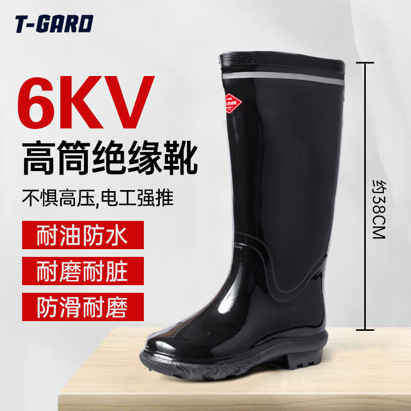 胜丽6KV绝缘靴电工防护橡胶高筒雨靴劳保鞋 RB6KV 黑色
