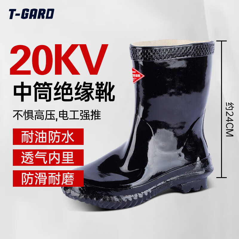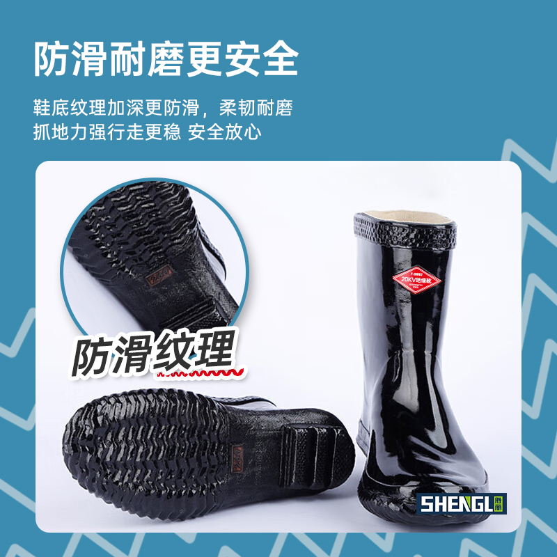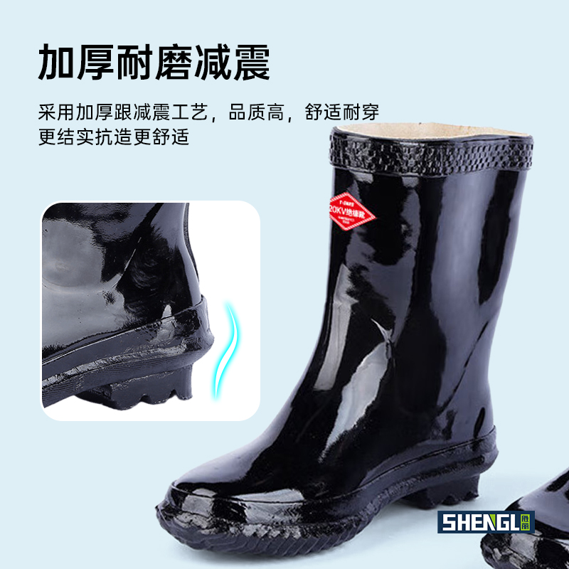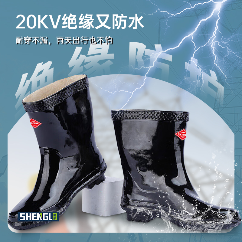 胜丽 20kv高压绝缘靴中筒雨靴橡胶电工防护 黑色 RB20KV