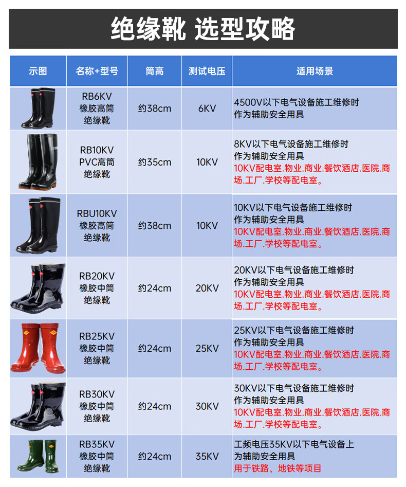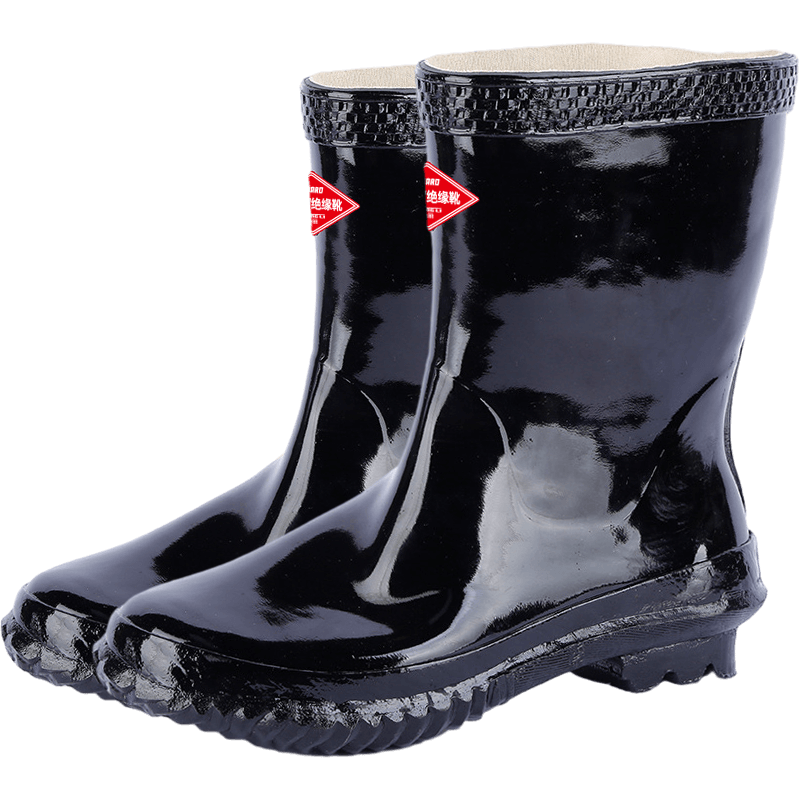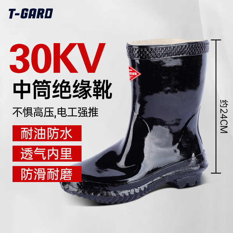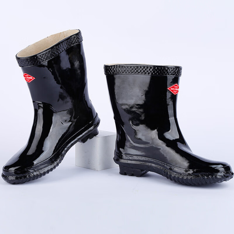 胜丽30KV高压绝缘靴电工防护橡胶中筒雨靴劳保鞋 RB30KV 黑色