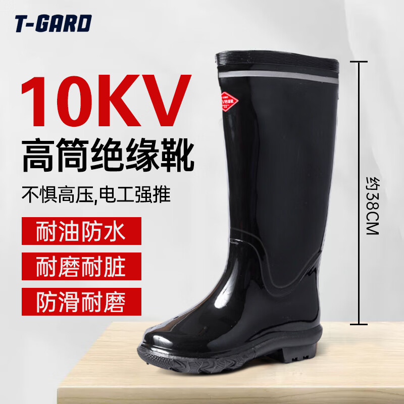胜丽 10kv绝缘靴高筒雨靴橡胶电工防护 黑色 RBU10KV