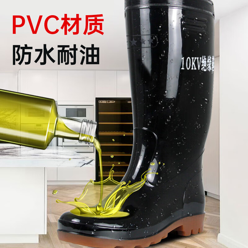 胜丽10kv绝缘靴安全鞋高筒雨靴耐油耐酸碱牛筋底 黑色 PVC材质 RB10KV
