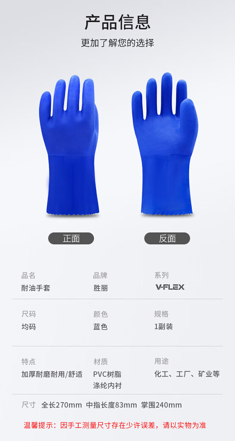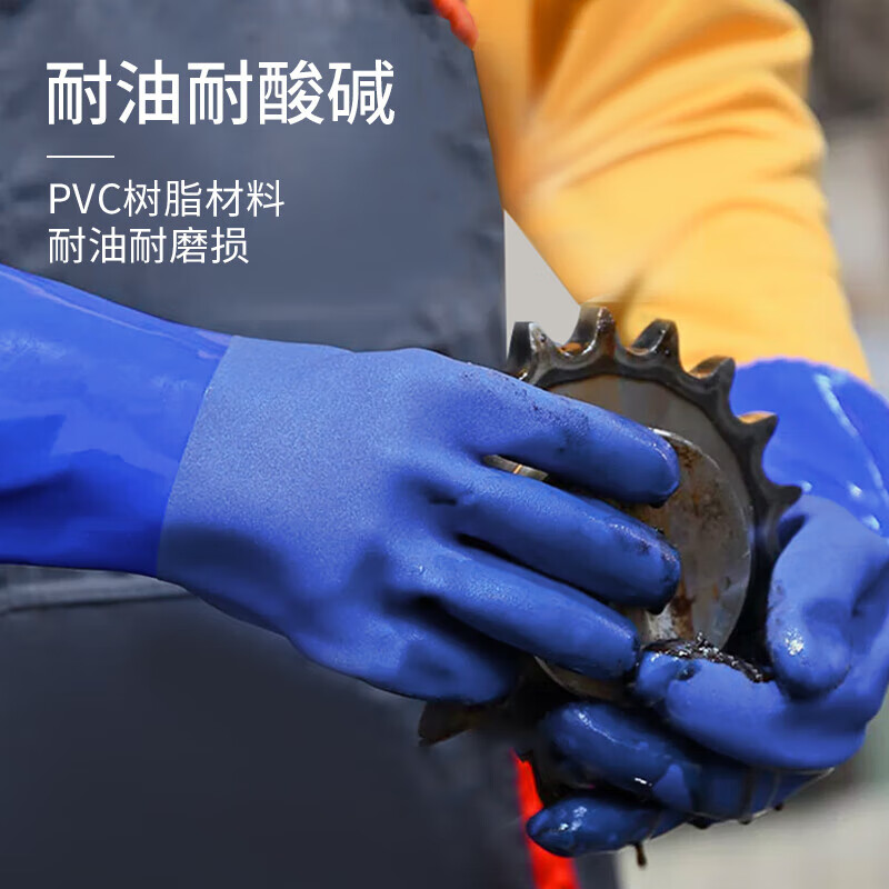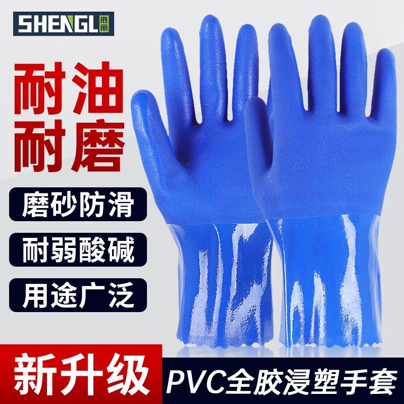胜丽 防水手套劳保PVC防油手套机修胶手套加厚工业耐磨耐油耐酸碱防化手套 801 27cm