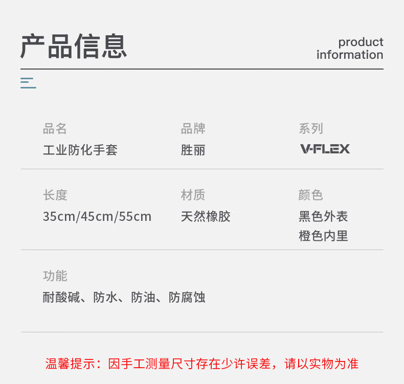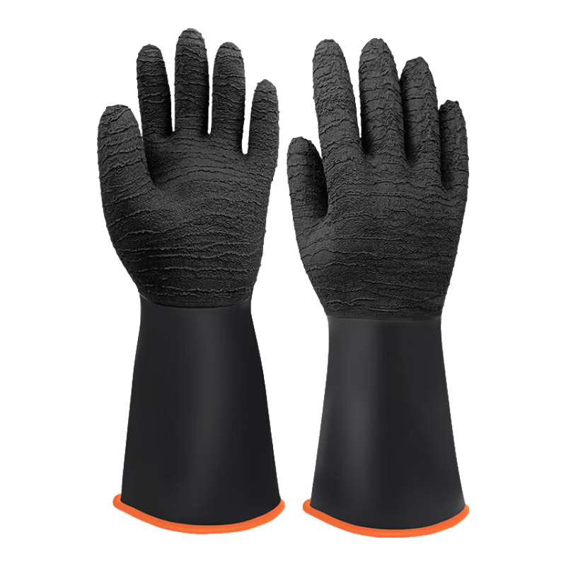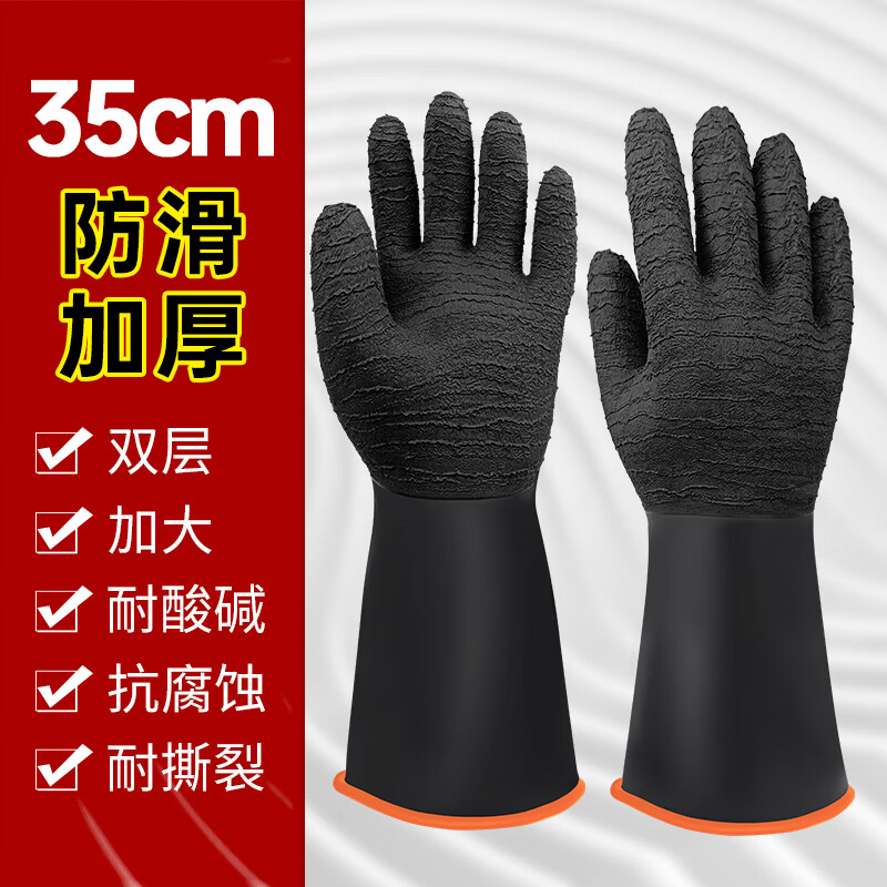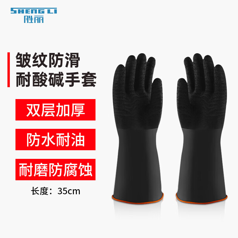 胜丽耐酸碱乳胶手套防化双层胶手套长袖皱纹外黑内橙 35cm RIH-535