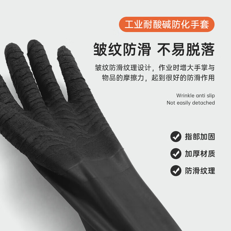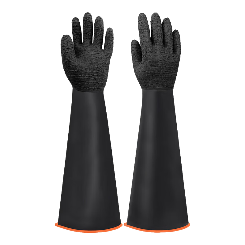 胜丽耐酸碱乳胶手套防化双层胶手套长袖皱纹外黑内橙55cm RIH-535