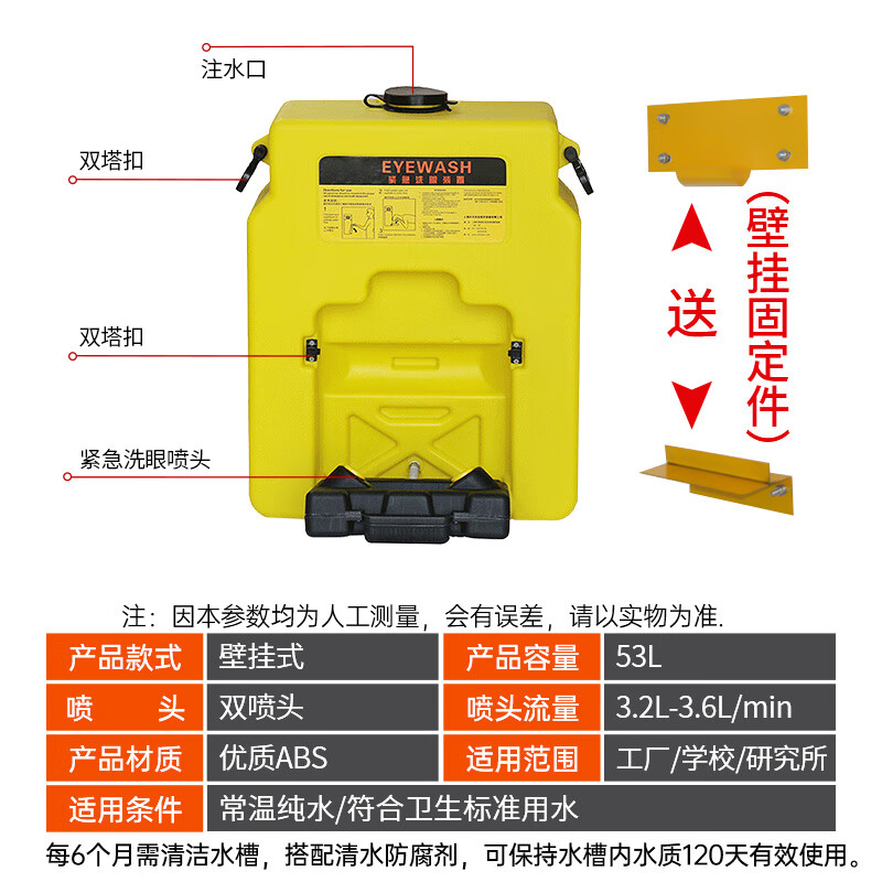 胜丽 洗眼器工业用双喷头便携移动壁挂式 53L 1台 EYD53G