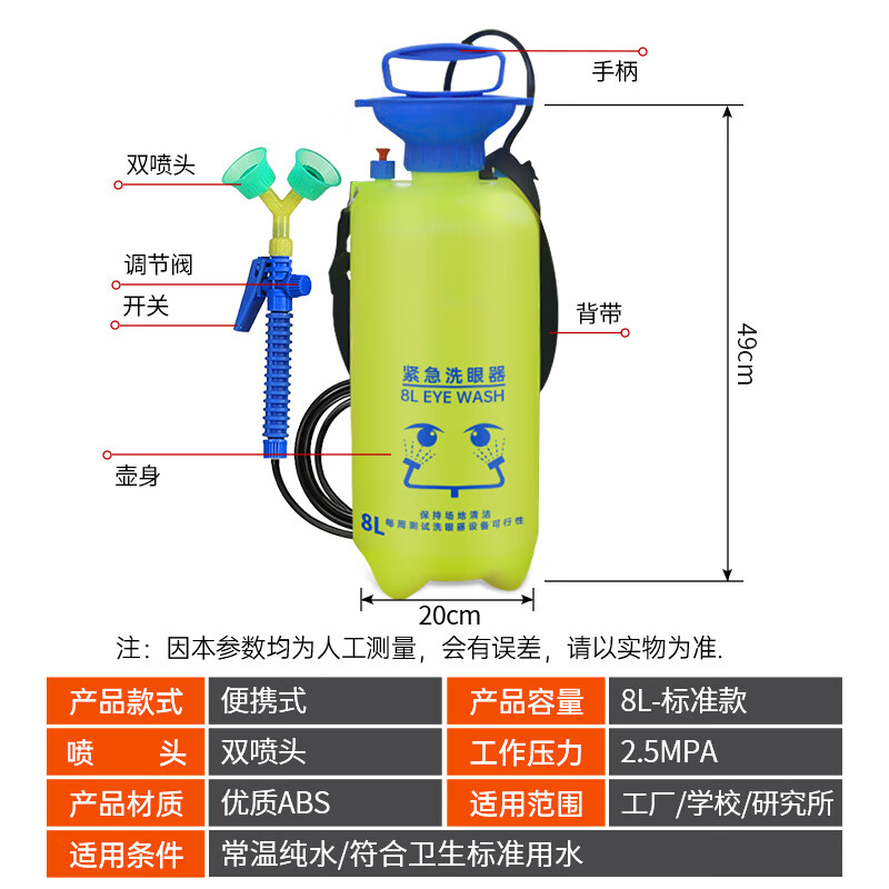 胜丽 洗眼器便携式可移动洗眼器工业用验厂双口实验室8L 1台装 EYD08