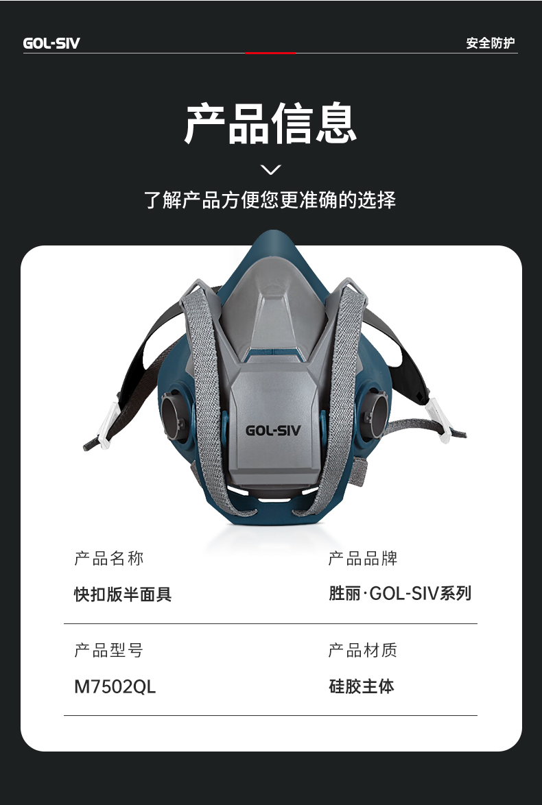 胜丽 硅胶呼吸防毒面具/不含配件快扣版搭配滤毒盒用 M7502QL