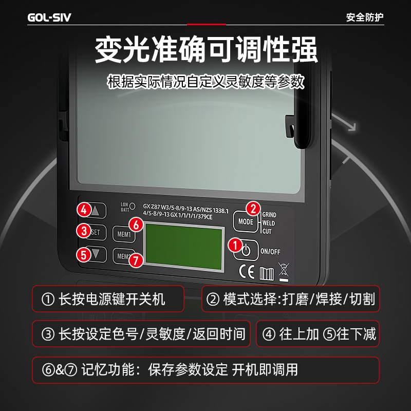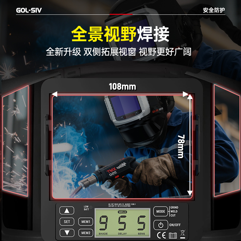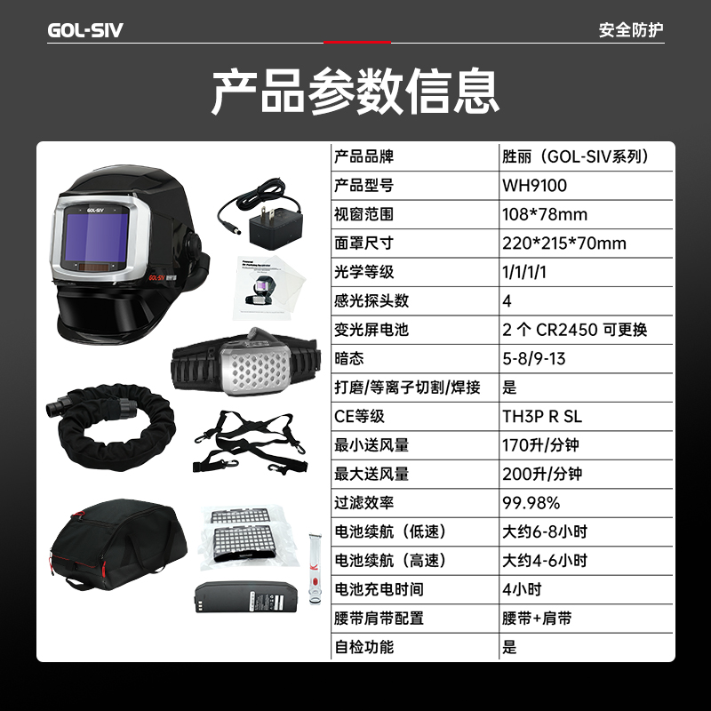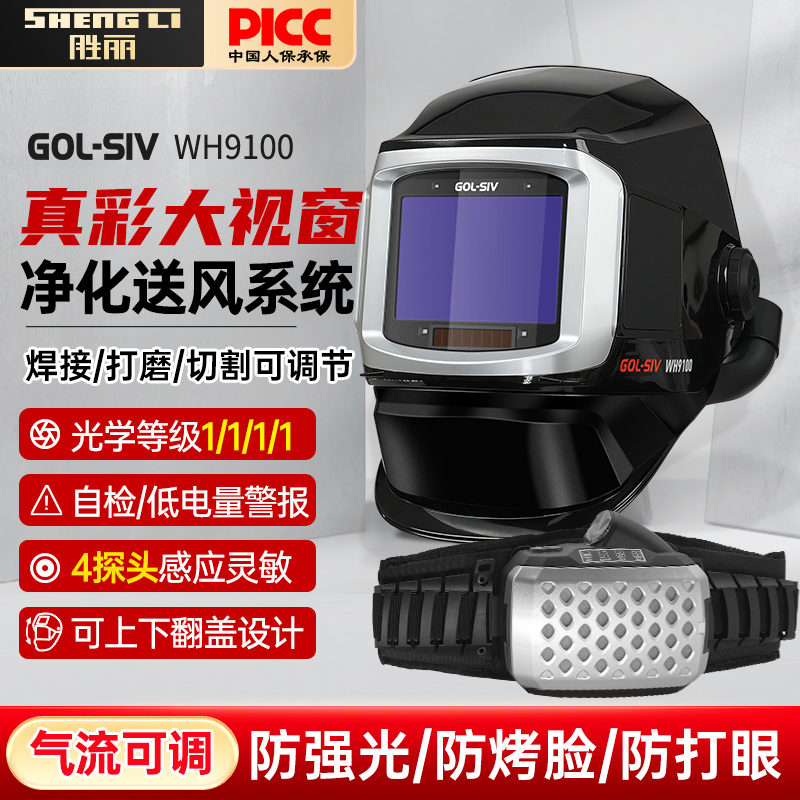 胜丽(SHENGLI) 电动送风空气净化呼吸器自动变光电焊面罩侧面可视窗焊工专用焊帽 WH9100