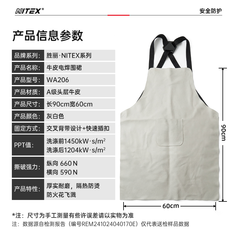 胜丽 NITEX® 电焊牛皮围裙头层牛皮整张皮牛皮围裙60*90带口袋 WA206