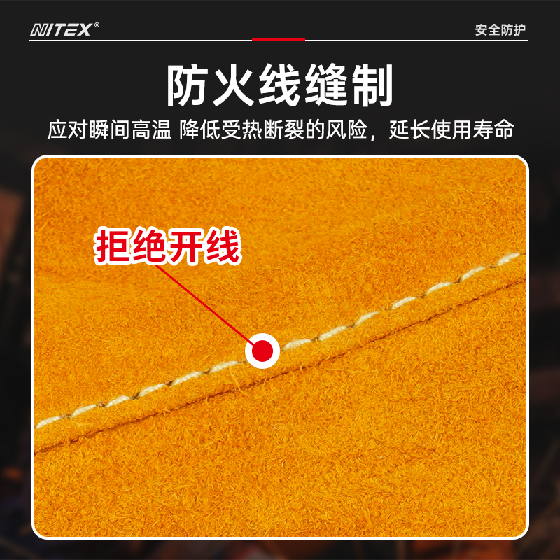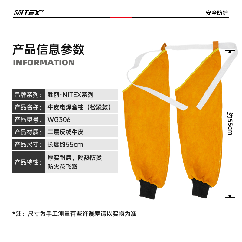 胜丽 NITEX® 焊工防护装备牛皮套袖护袖电焊劳保防烫耐高温隔热耐磨WG306