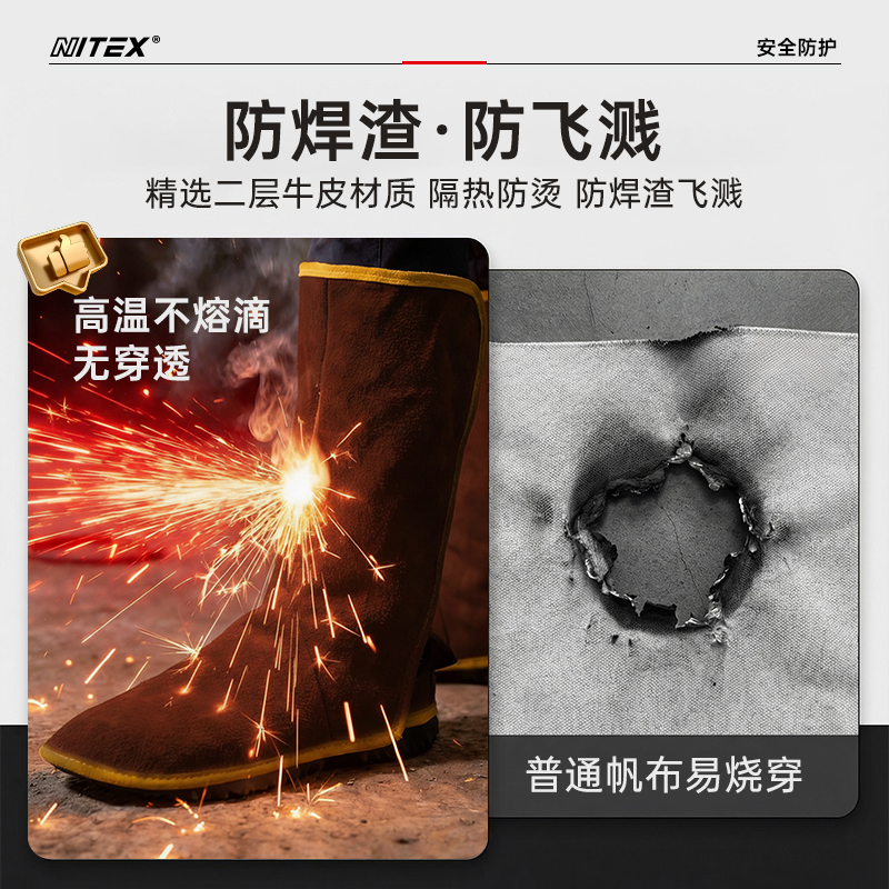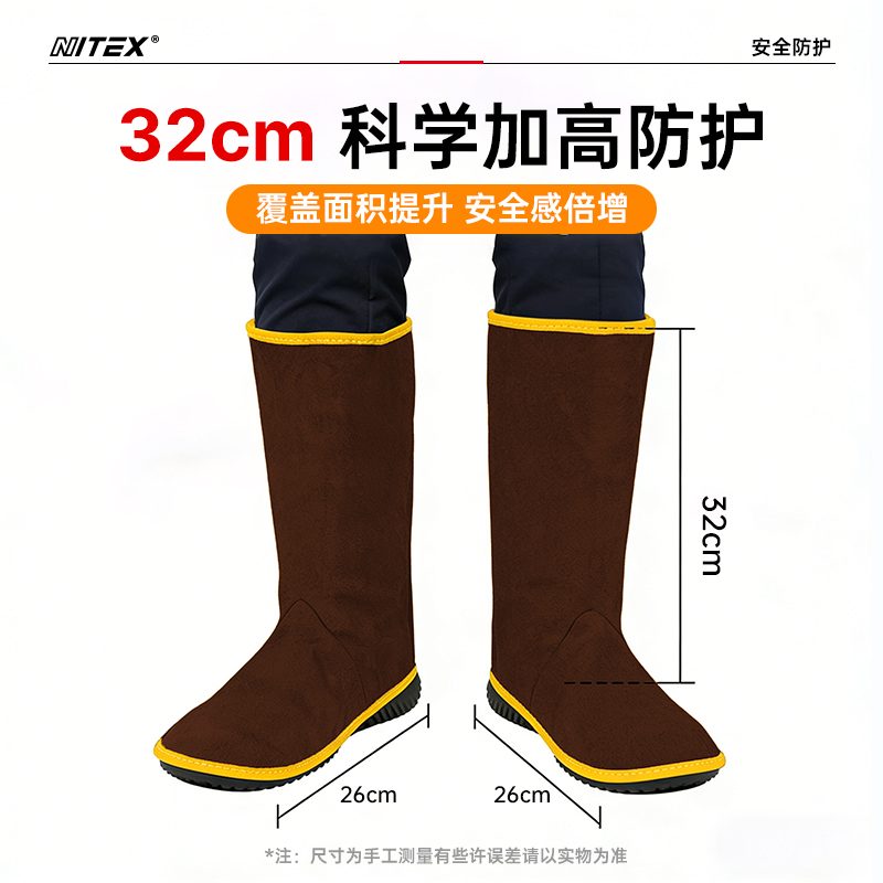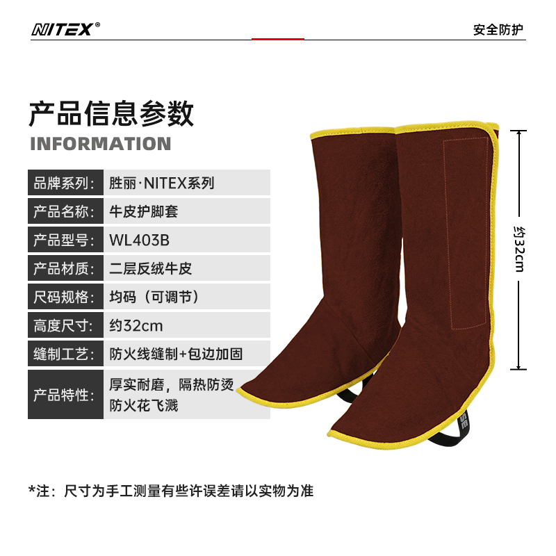 胜丽 电焊护脚套牛皮焊工防护装备防烫耐磨隔热护腿 棕色WL403B