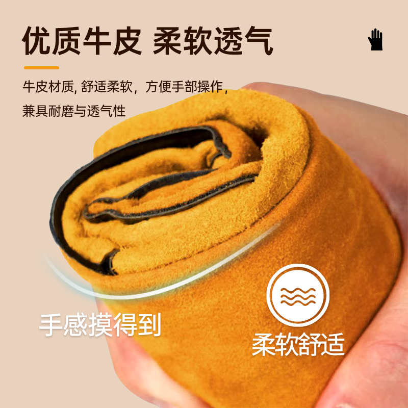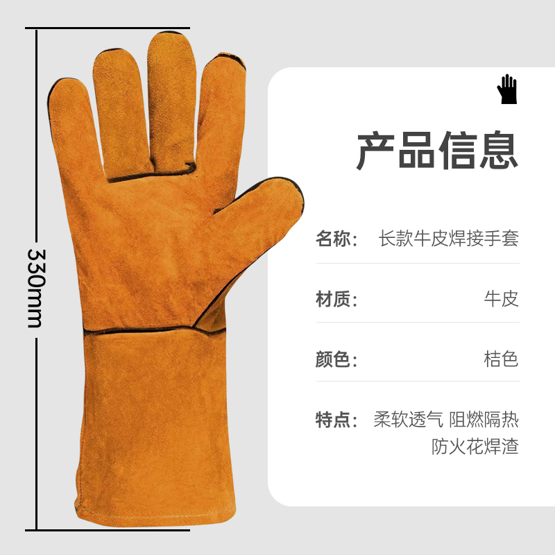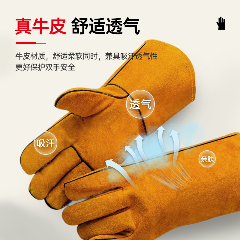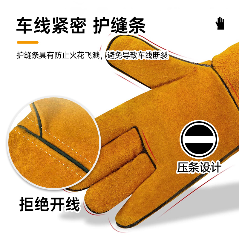 胜丽(SHENGLI) 焊工手套牛皮焊接加长手套防烫耐磨劳保电焊手套 黄色 GHN015 1副