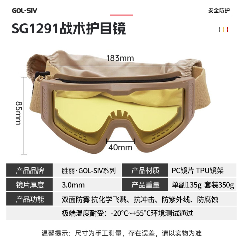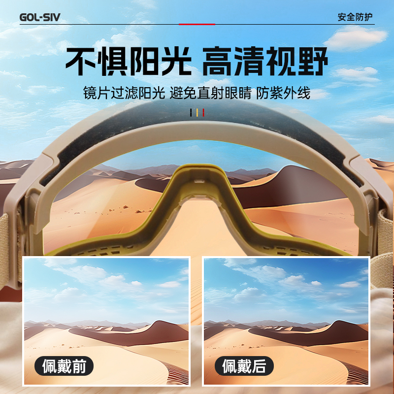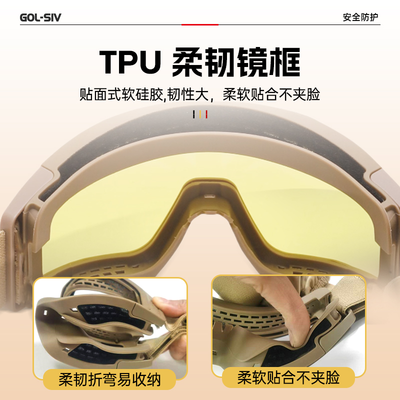胜丽 战术护目镜 CS护目镜防彩弹放水弹军迷户外射击漂流工作防护眼镜 战术护目镜套装 SG1291卡其色镜框