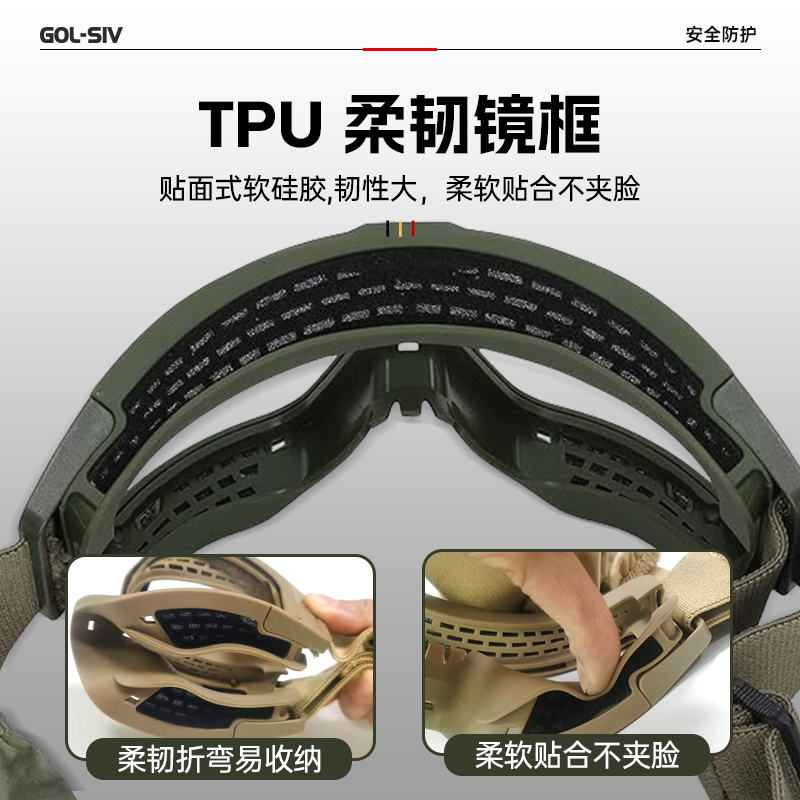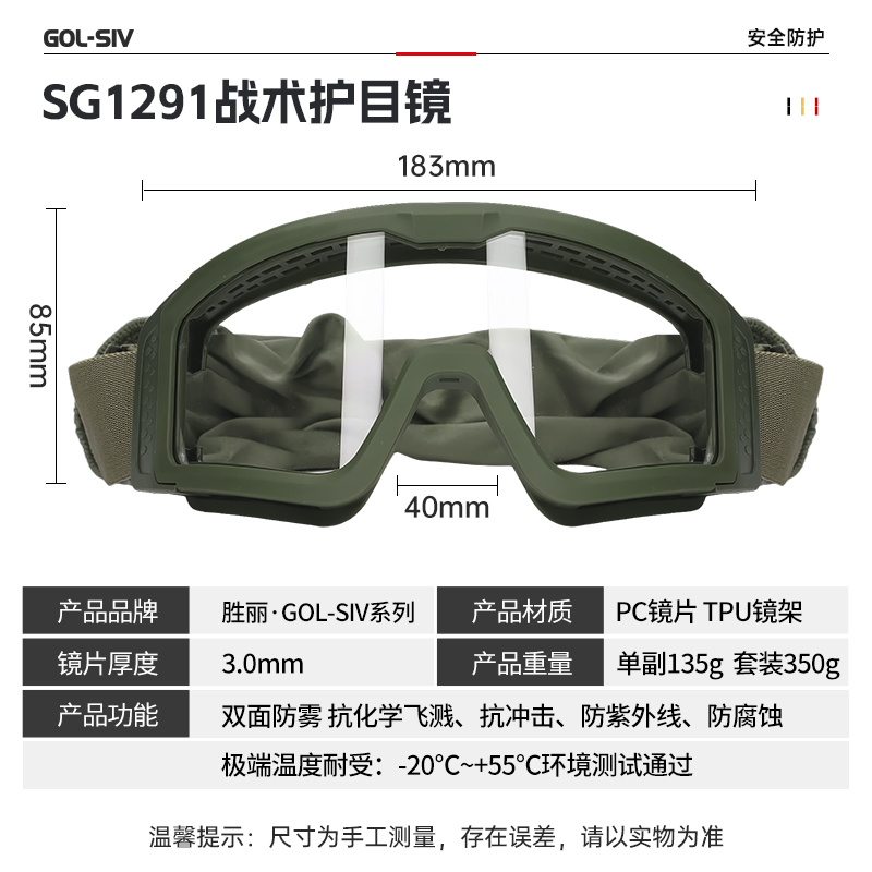 胜丽 战术护目镜 CS护目镜防彩弹防水弹军迷户外射击漂流工作防护眼镜 战术护目镜套装 SG1291 墨绿色镜框
