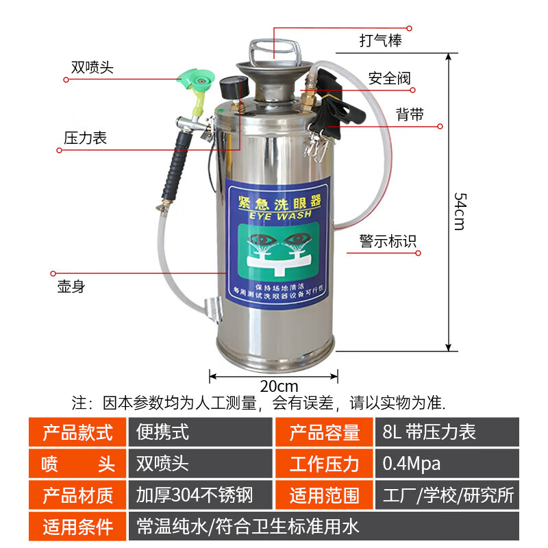 胜丽 便携式洗眼器 验厂工业实验室双口可移动304不锈钢8L 1台装 EY3048