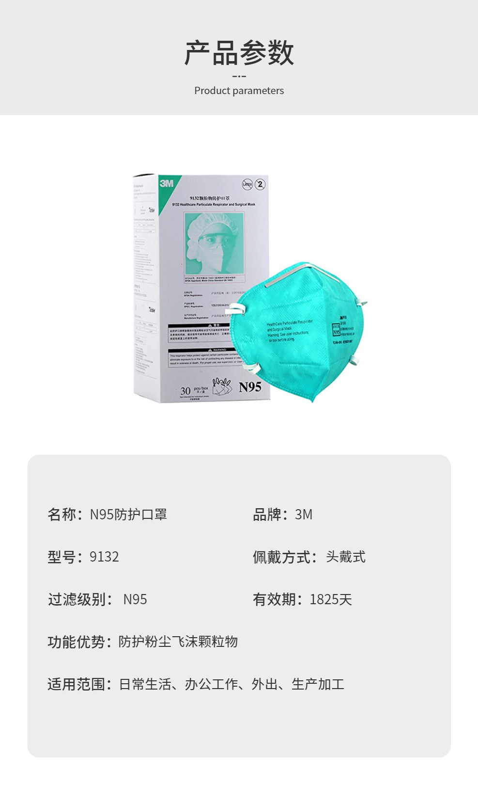 3M 9132 口罩N95防飞沫防护颗粒物口罩 30只/盒