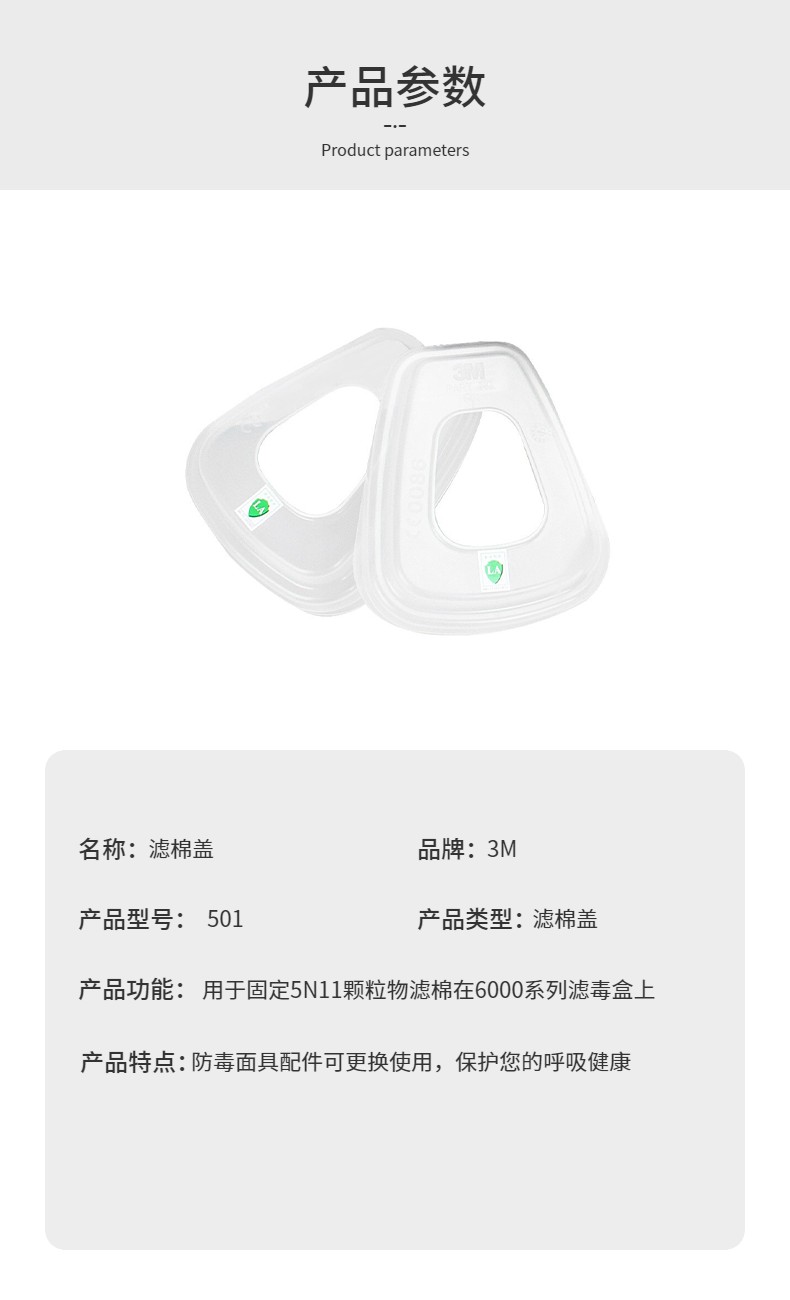 3M 501 滤棉固定盖 用于面具配件固定5N11滤棉使用 10个/包