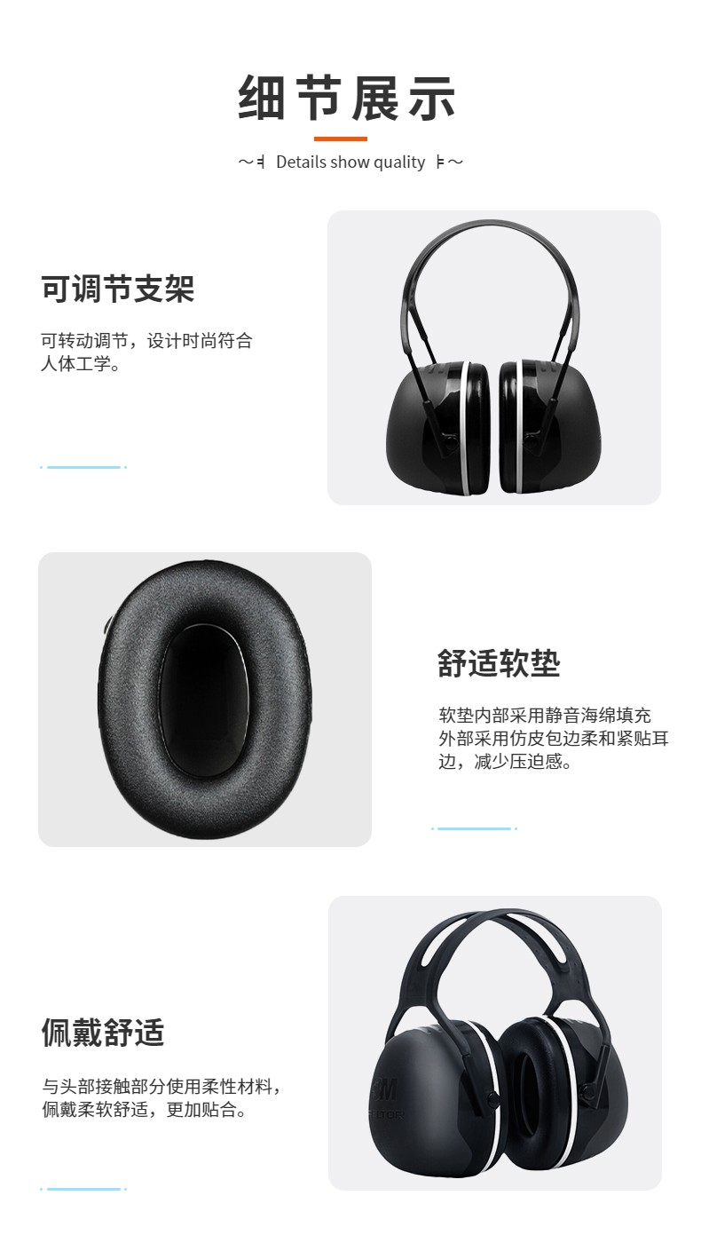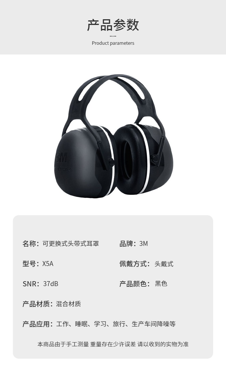 3M X5A 隔音耳罩 降噪隔音睡觉 黑色 可旋转降噪37db 1副装