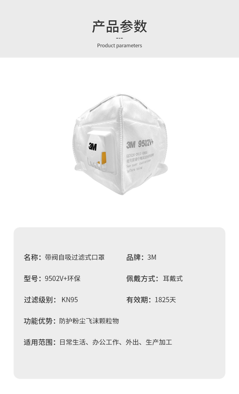 3M 9502V+口罩 防雾霾飞沫KN95口罩 工业防尘 舒适针织带 头带式 呼吸阀 环保装 25只/袋