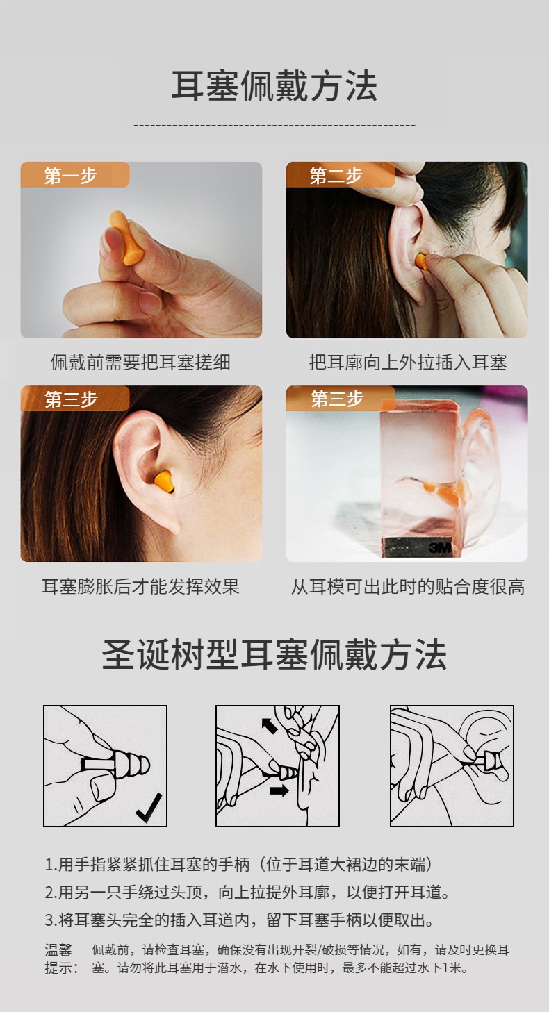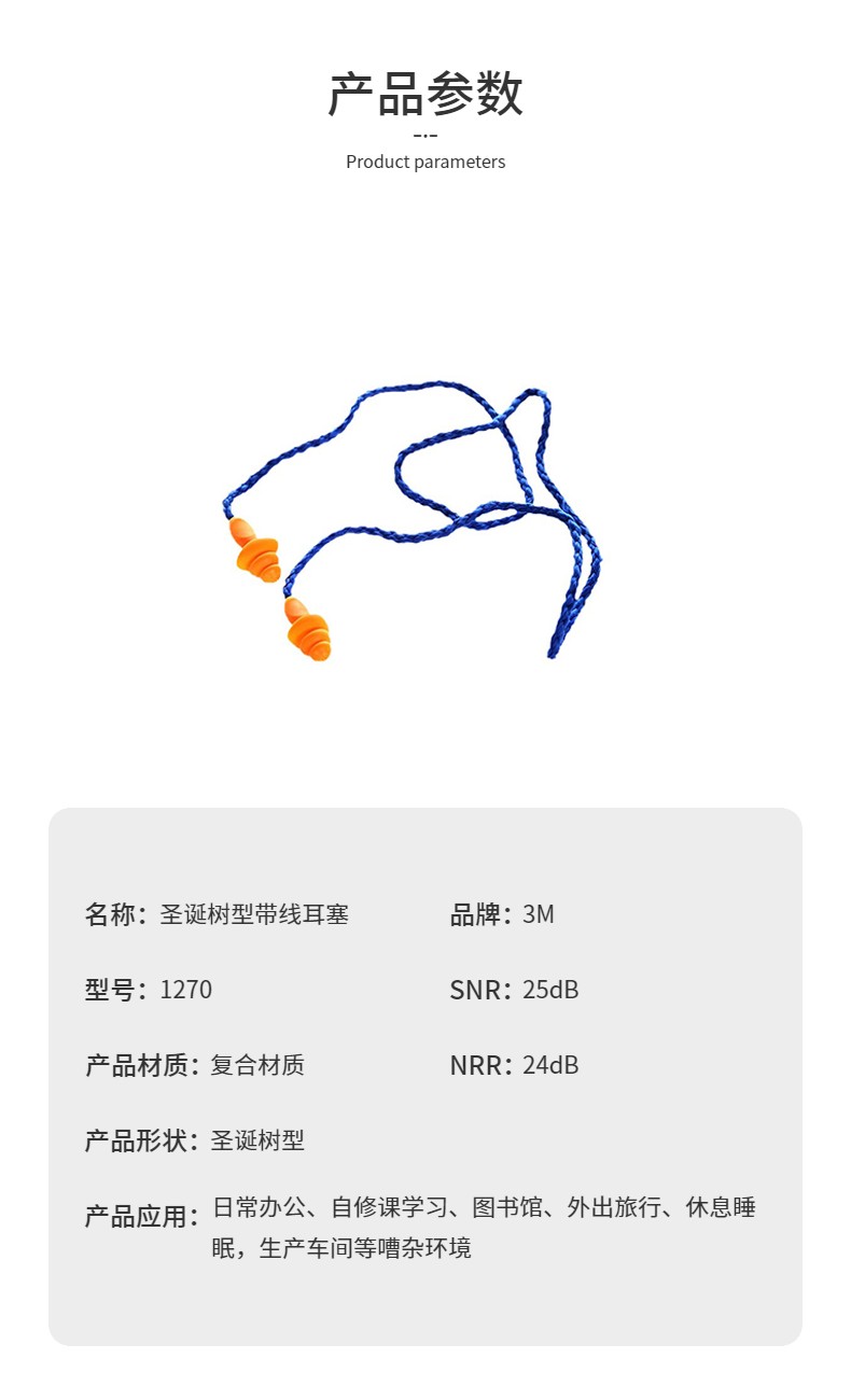 3M 1270圣诞树型带线耳塞 工业降噪25db 5副装
