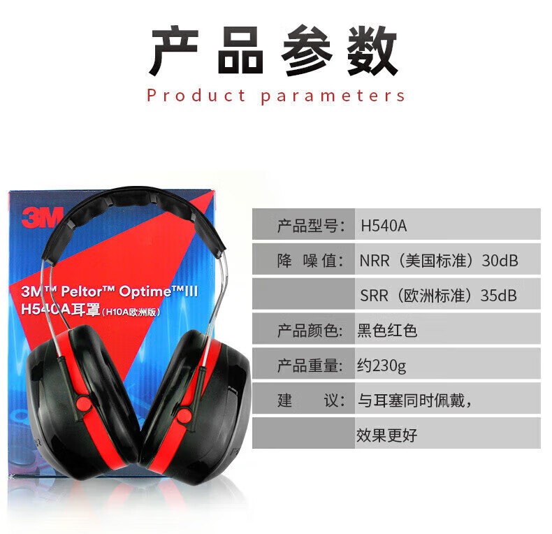 3M H540A 隔音耳罩 睡眠降噪耳机防噪音 35分贝 黑色